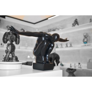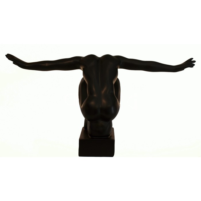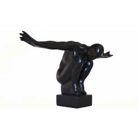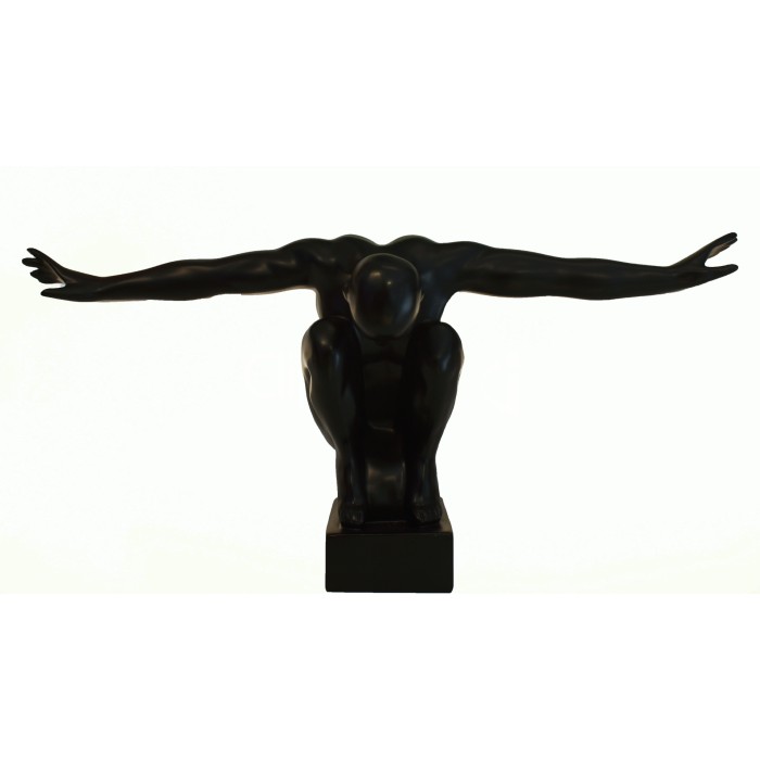 A simple yet impactful sculpture in the spectrum of art deco. A male human figure in a kneeled balancing posture will add dynamic aesthetic to your space or any loved one your choose to gift this.